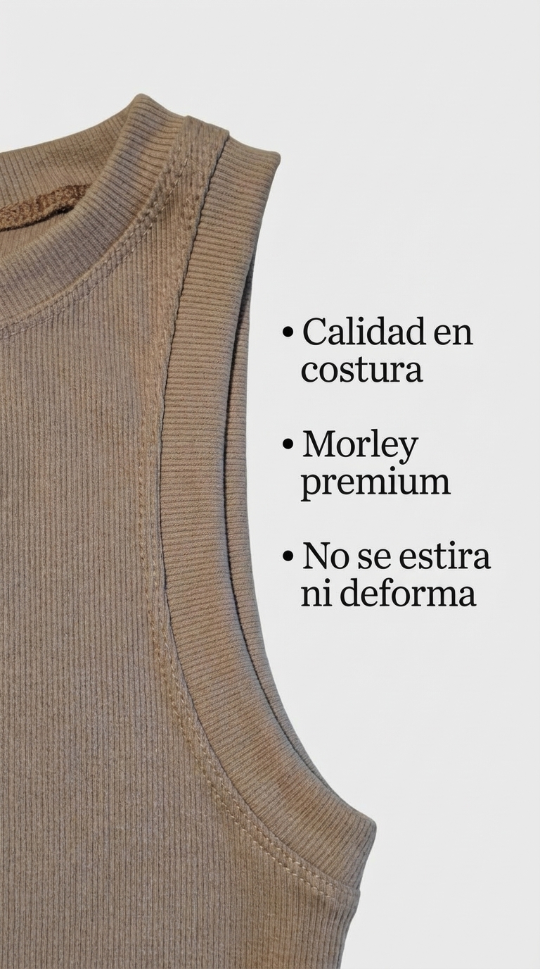 La musculosa de morley acompaña la figura sin marcar, y el pantalón wide leg aporta ese estilo urbano que está en todos lados: cómodo, moderno y con mucha actitud.